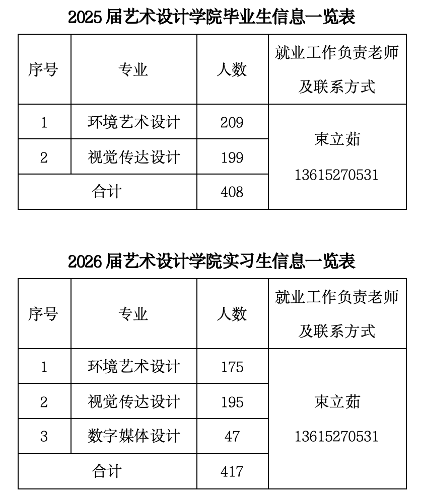 艺术设计学院2025届毕业生、2026届实习生信息一览表