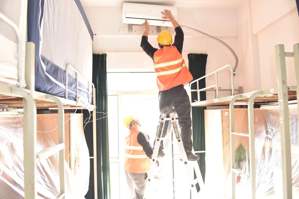 该项目于2025年7月启动,学校党委和行政高度重视,主要领导多次深入宿舍调研并现场调度。施工期间,学校采取“分楼栋同步施工、错峰作业”模式,在保障学生正常上课的前提下高效推进,原定30天工期缩短至25天。