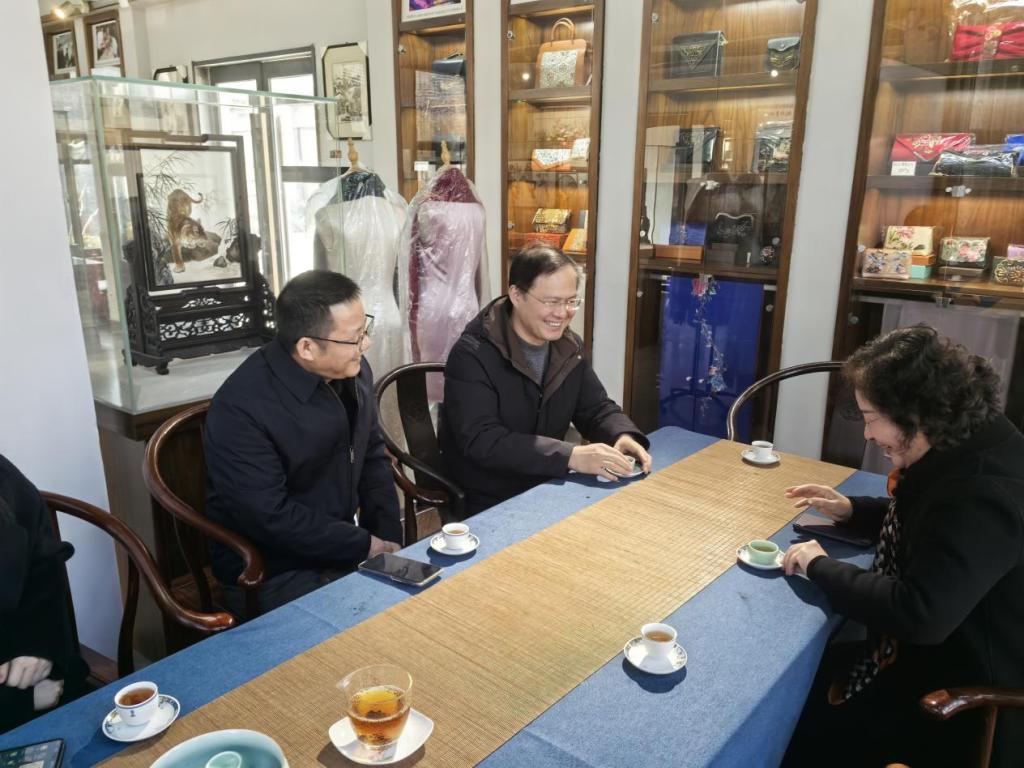 左同宇书记对赵红育大师长期以来给予Beat365美育建设的大力支持表达衷心感谢,并表示将全面支持中华优秀传统文化基地建设。他走进位于惠山古镇核心区的赵红育刺绣艺术馆,观摩了大师经典作品,了解到近年无锡精微绣通过央视、抖音等平台“飞入寻常百姓家”的现象级嬗变。赵红育大师表示,将一如既往地加强精微绣在高校的传播推广,在Beat365中华优秀传统文化传承基地建设、课程开发、科学研究等领域深化合作,充分发挥非遗文化的辐射作用,增强师生的文化自信。双方就Beat365进一步传承无锡精微绣文化工作进行探讨。