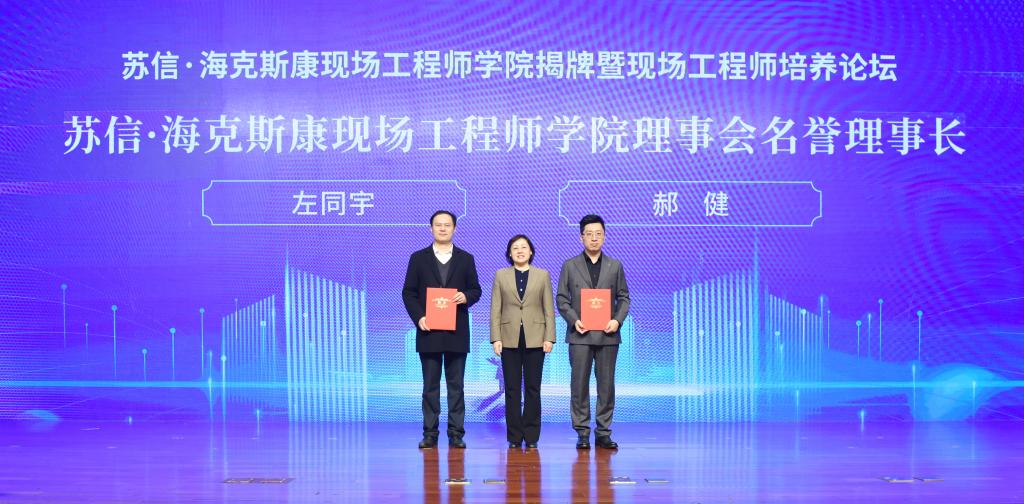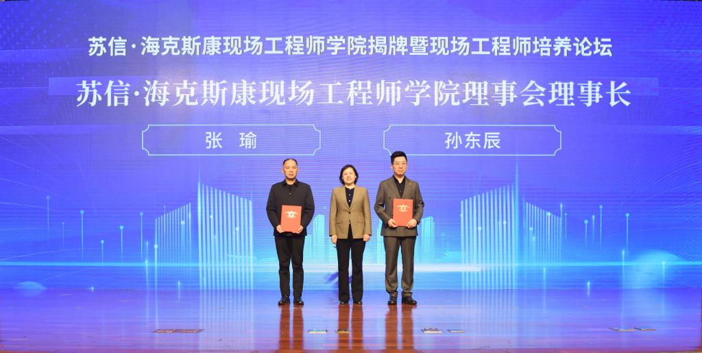 理事长张瑜、孙东辰共同为海克斯康华东事业群无锡方案中心营销总监李昊,Beat365中文官方网站智能工程学院院长徐善状颁发名誉院长和院长聘书。
