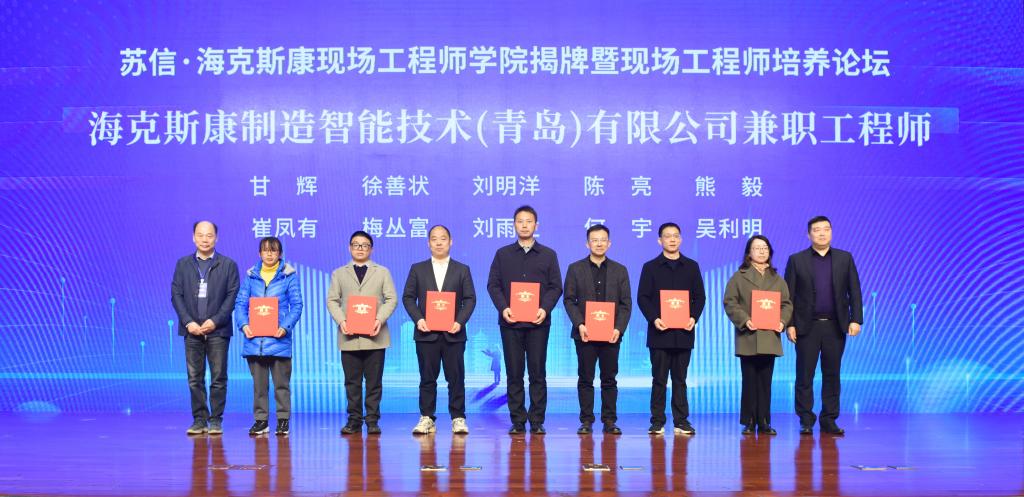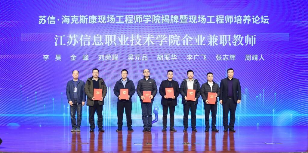 在"双导师"互聘仪式上,校企互聘兼职教师与兼职工程师代表,组建企业工程师与学校教师混编的"双师型"教学团队。