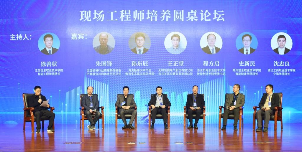 主题报告环节中,郑丽梅主任以《产教融合助力装备制造业高质量发展》为题,深入解读了产教融合对产业升级的核心驱动作用,分享了丰富的政策理论功底与实践经验。涂三广副处长作《关于职业教育现场工程师培养的问题思考》专题报告,剖析了当前培养过程中的核心难点与突破方向。圆桌论坛上,朱国锋、孙东辰、王正堂、程方启、史新民、沈忠良六位嘉宾,围绕“共筑新平台,同育新工匠:现场工程师培养的实践与展望”主题,展开了多维度、高密度的深度对话。