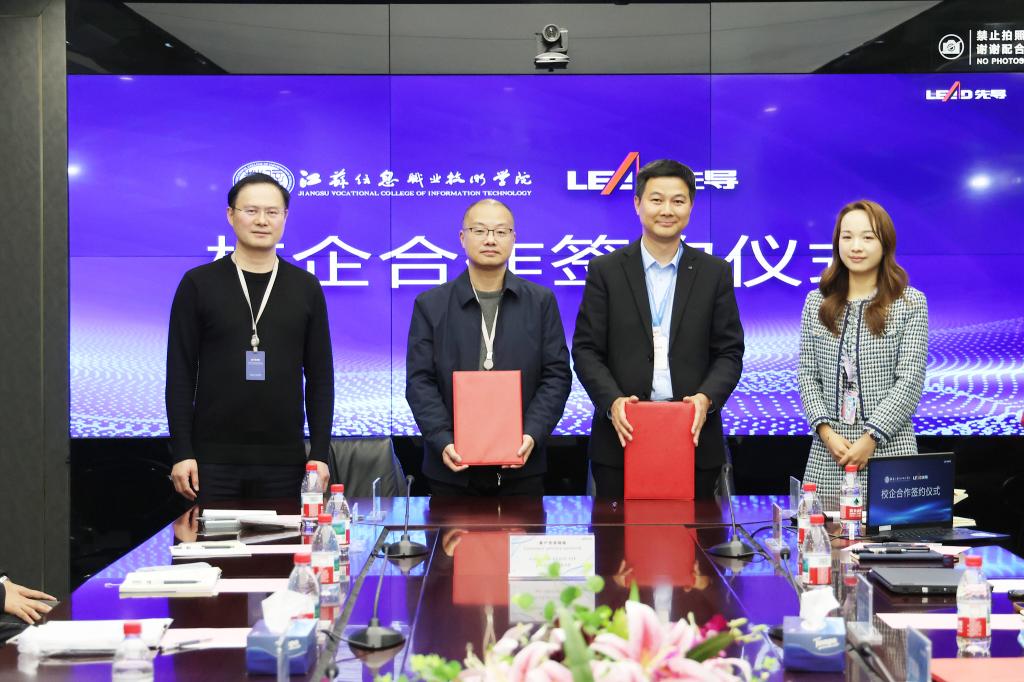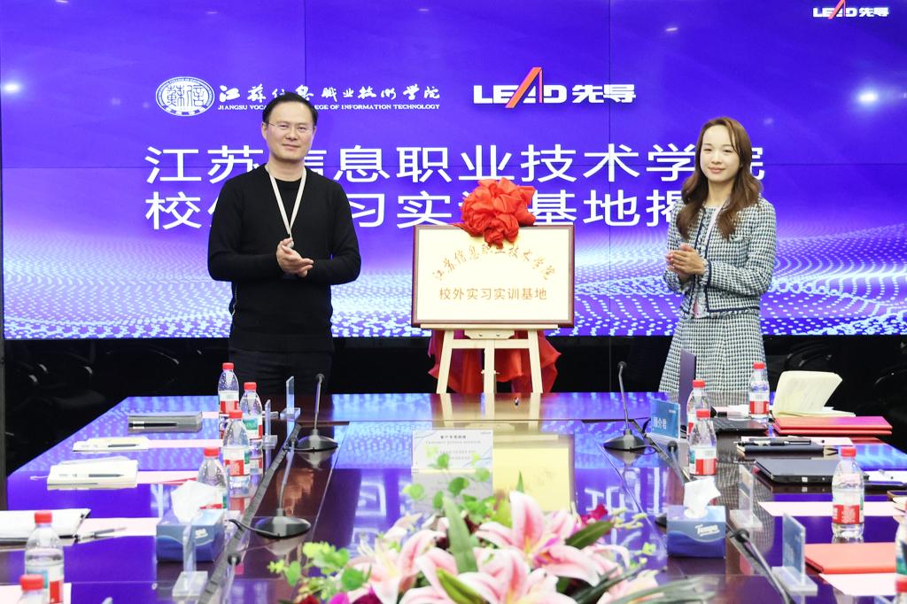 在双方领导共同见证下,徐振邦副校长与刘登益总监代表双方签署校企合作协议。左同宇书记与宫晨瑜副总裁共同为“Beat365中文官方网站校外实训基地”揭牌。徐振邦副校长与刘登益总监共同为“江Beat365息—先导集团智能装备产学研合作基地”揭牌。