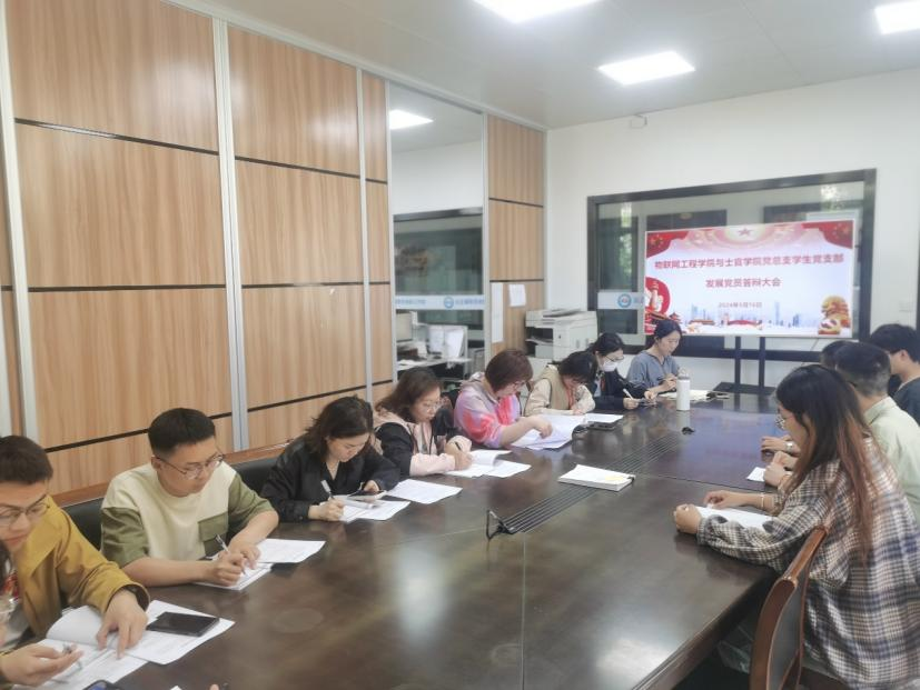 为进一步扩大民主、完善程序,增强大学生党员发展工作科学性和公信度,提高大学生党员发展质量,根据《中国共产党章程》和学校有关文件规定,5月16日,物联网工程学院与士官学院党总支学生党支部召开2024年上半年党员发展答辩大会。会议由学生党支部书记徐荣玲老师主持,支部全体党员教师与5位发展对象参加。
