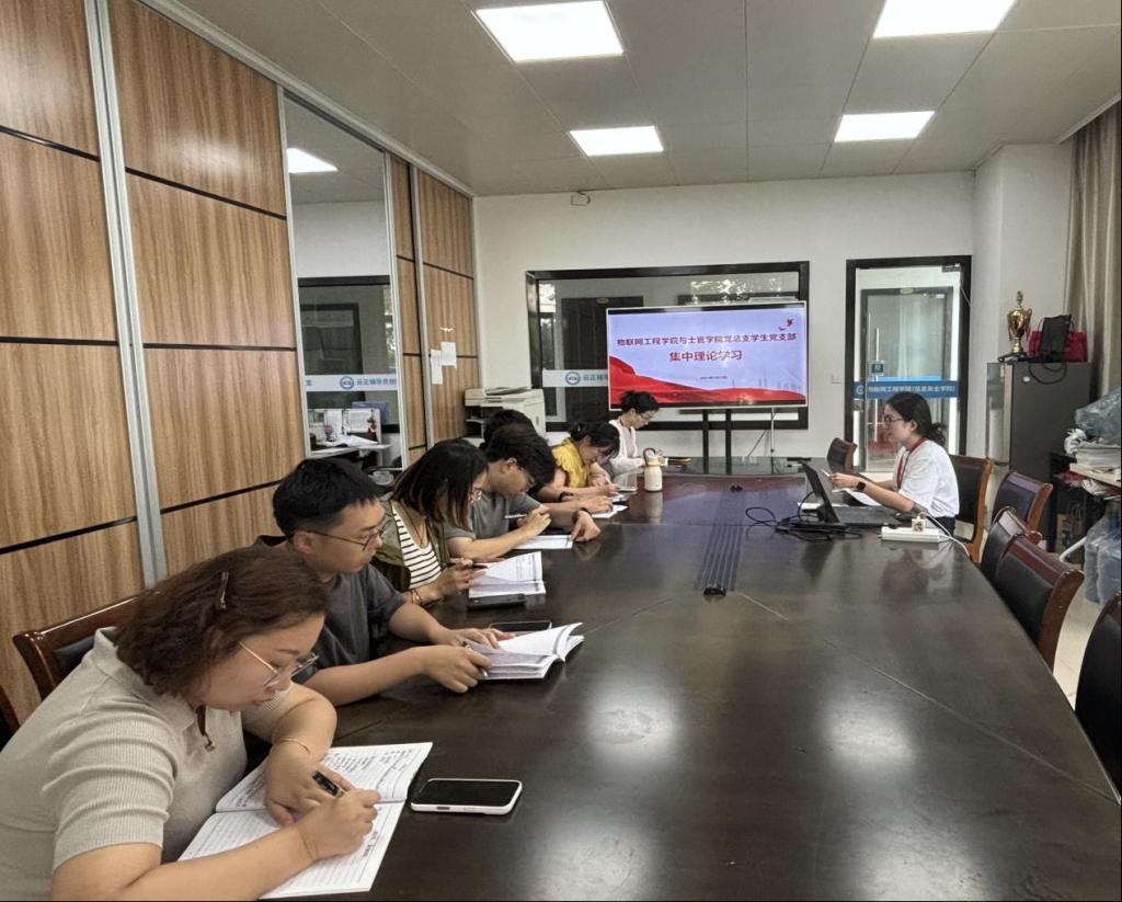 2025年9月23日,物联网工程学院与士官学院党总支学生党支部围绕习近平总书记的重要讲话开展9月份集中理论学习,支部书记徐荣玲老师主持会议并领学。