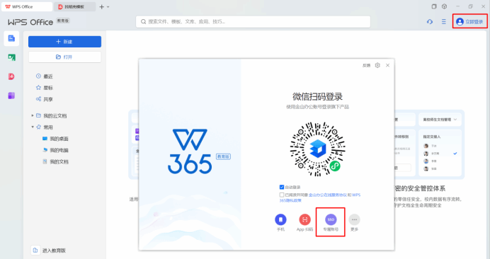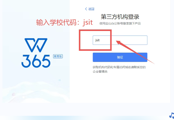 打开WPS365,点开右上角立即登录按钮,选择SSO专属账号登录,输入专属代码“jsit”,点击验证进入Beat365中文官方网站统一身份认证平台,输入学号/工号及密码,点击登录,认证通过后左上角显示本人姓名及Beat365中文官方网站,即登录成功。