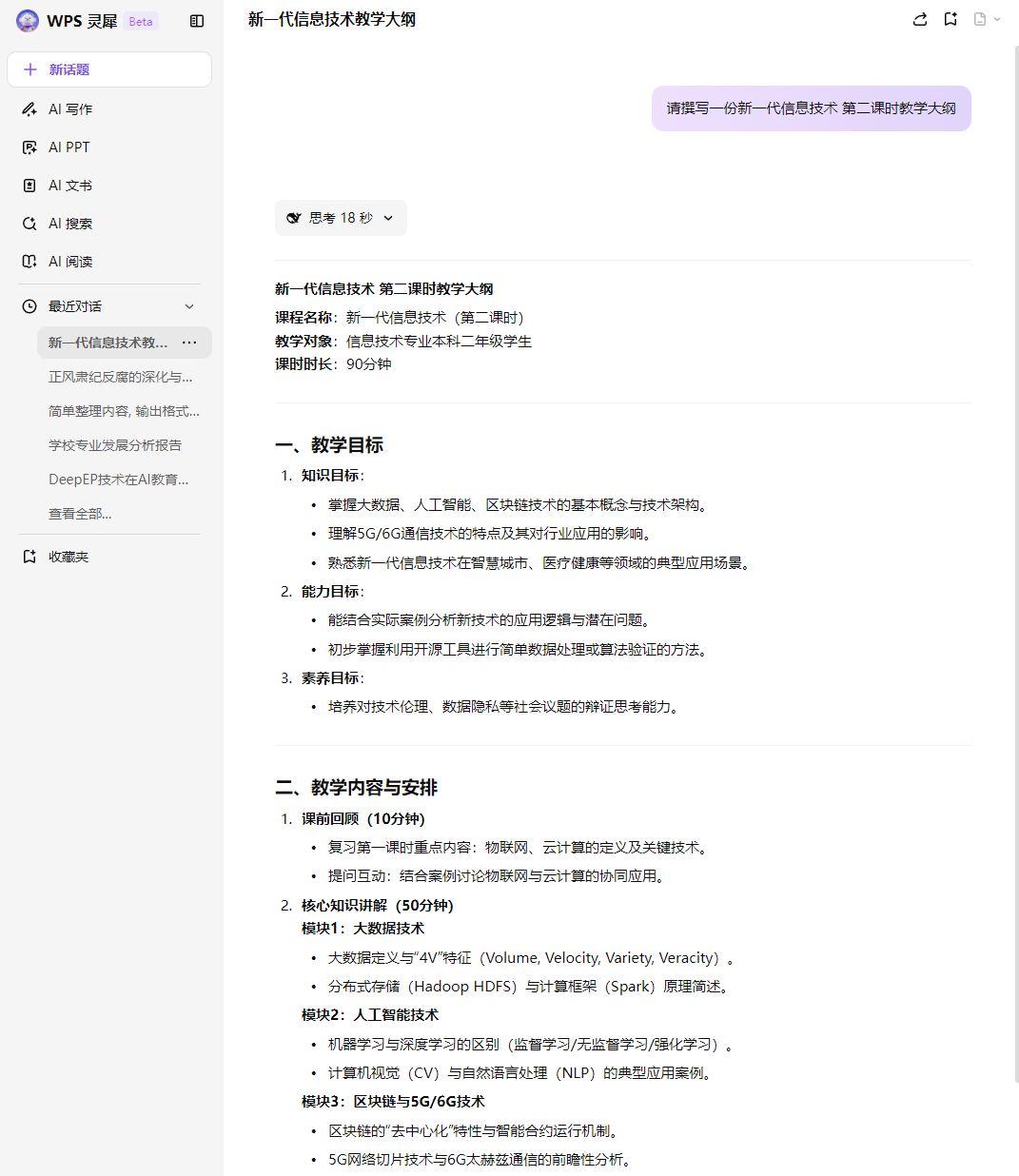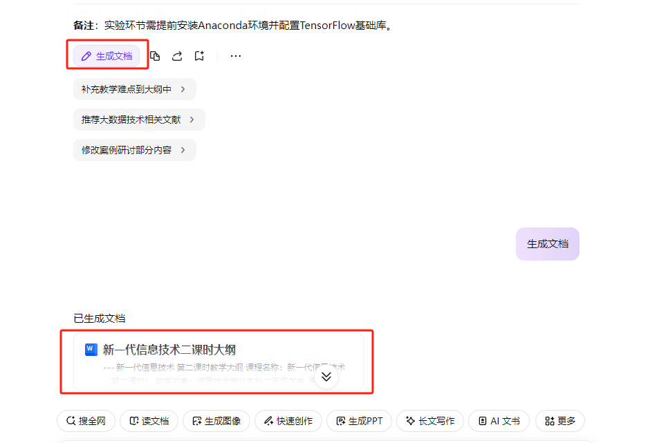 辅助教育教学:输入课程名称和授课内容,即可获取教学大纲等,丰富授课内容的应用案例和未来趋势。