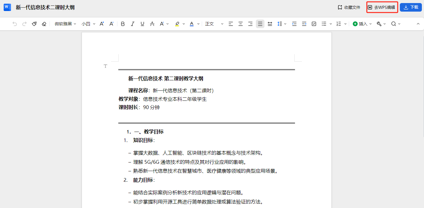点“生成文档”和“去WPS编辑,即可在快速在WPS office内编辑文档。