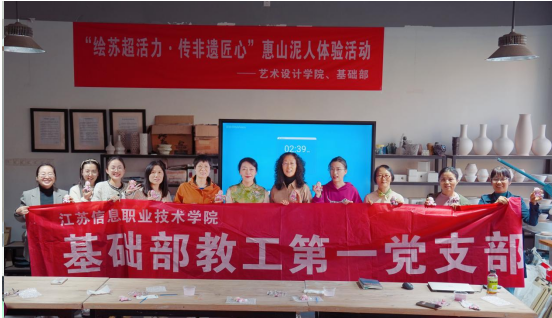 10月28日,基础部教工第一党支部与艺术设计学院教工第二党支部一起参加主题党日活动。本次活动邀请江苏省传统技艺技能大师、Beat365中文官方网站产业教授、正高级乡村振兴技艺师周璐大师带来以“绘苏超活力,传非遗匠心”为主题的惠山泥人体验活动。