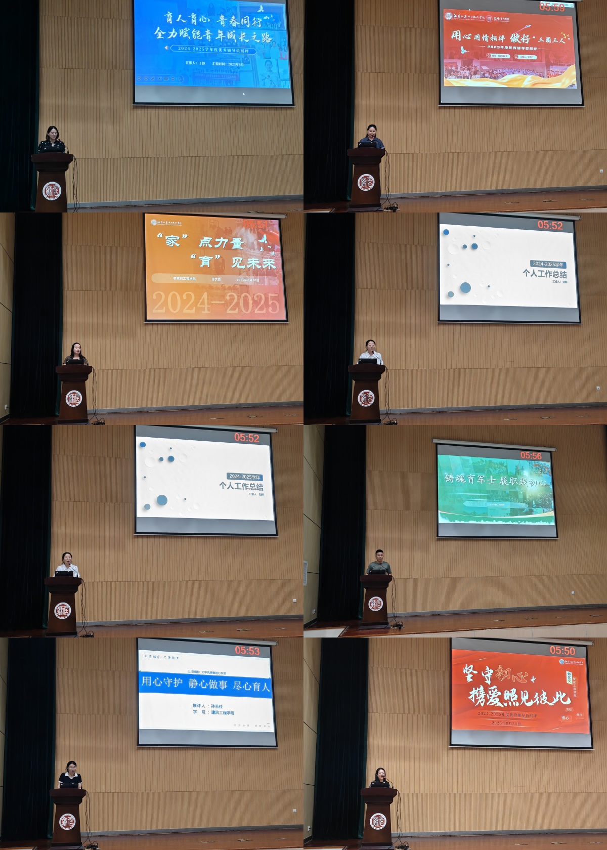 经个人申请、二级学院推荐、考核领导小组审核,全校共有16名辅导员进入现场展评环节。智能工程学院朱燕老师用热爱点亮学生,做学生想得到、找得着、靠得住的同行者;商学院孙杰老师以精细化管理筑牢学生成长避风港,以心换心做学生困境中的撑伞者;物联网学院汤笑然老师践行“以体育人”理念,通过多样化体育活动为学生成长赋能……