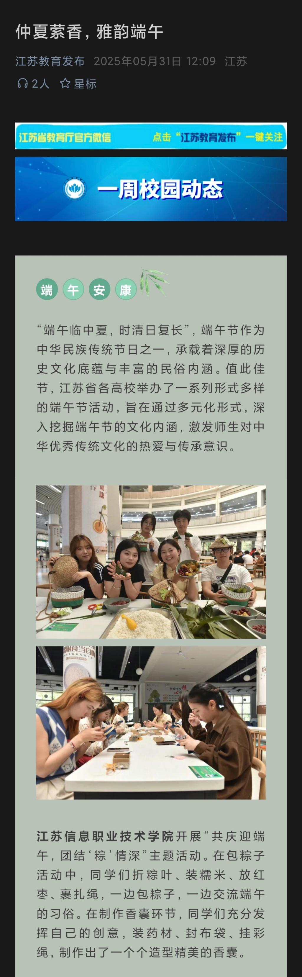 江苏教育发布:Beat365中文官方网站开展“共庆迎端午,团结‘粽’情深”主题活动