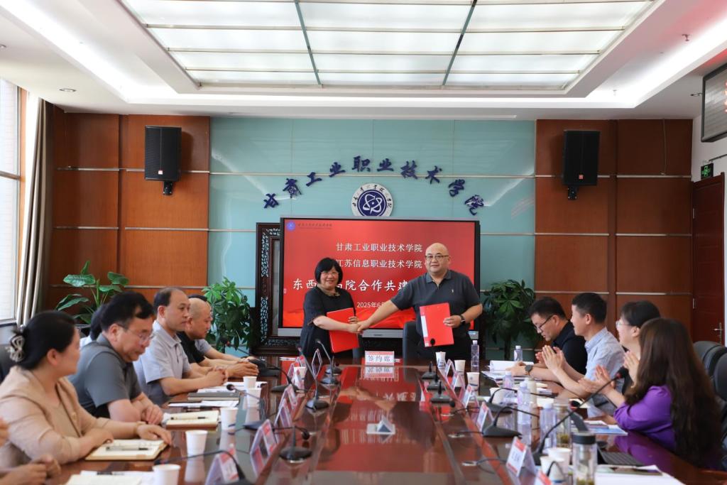 6月11日,合作共建签约仪式在甘肃工业职业技术学院举行。甘肃工业职业技术学院党委副书记文云对马院一行表示热烈欢迎。他指出,此次合作共建是东西部高职院校思政教育资源整合的重要实践,期待双方以协议签订为契机,在课程开发、师资交流、实践研修等领域深化合作,共同为培养担当民族复兴大任的时代新人贡献力量。双方正式签订《东西部马克思主义学院合作共建协议》。