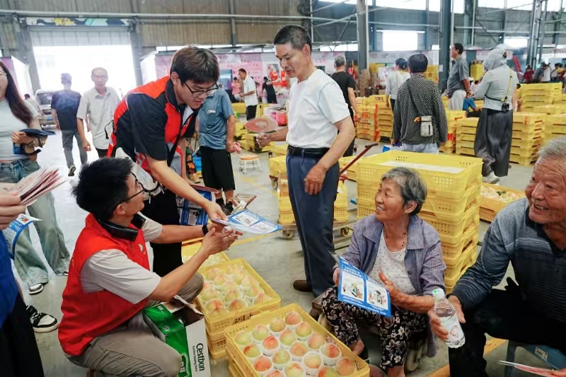 7月1日,正值庆祝中国共产党成立104周年之际,马克思主义学院德法教研室冯莹主任带领法翼知行队,联合阳山镇党委、镇综治、司法部门,深入阳山镇水蜜桃交易市场核心区域,开展了一场以“守护桃农钱袋子”为主题的暑期社会实践暨法治宣传活动。