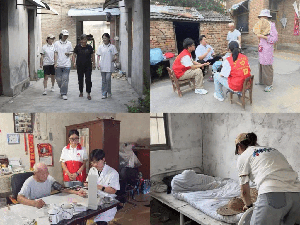 在课堂之外,志愿者们延伸服务半径,走进社区开展“一老一小”精准关爱。志愿者们通过家访建立儿童心理成长档案,为家长提供个性化沟通建议;还为老人测量血压、整理居家环境,用“健康小贴士”守护银发群体。从教室到家庭,从知识传授到情感陪伴,志愿者们用专业与温度织就了一张立体化的社区服务网络。