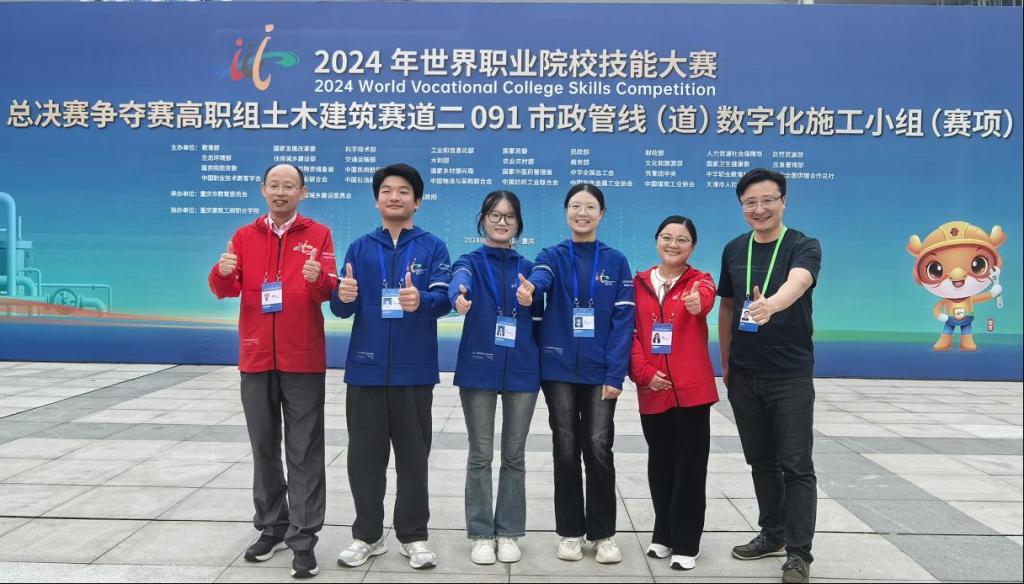 10月25至27日,2024年世界职业院校技能大赛总决赛争夺赛高职组土木建筑赛道二市政管线(道)数字化施工赛项在重庆建筑工程职业学院举行。Beat365建筑工程学院纪煦、李炜、吕言等3名同学在杨洋、张克纯老师的指导下,斩获金奖。