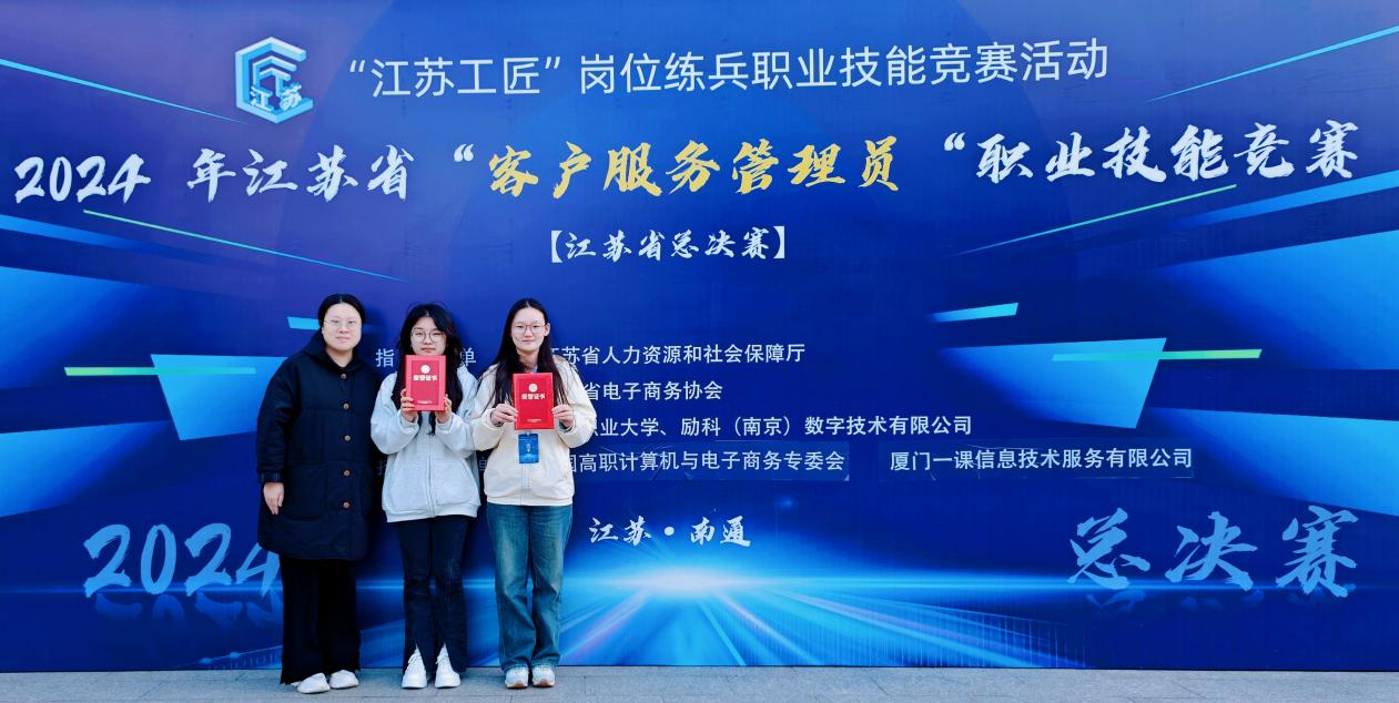 11月22日至23日,2024年“江苏工匠杯”岗位练兵职业技能竞赛“客户服务管理员”赛项江苏省总决赛在南通职业大学举行。商学院戴天瑾老师指导的电子商务专业陈子文、费欣如同学分别荣获一等奖。