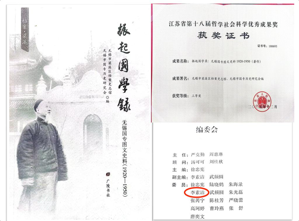 近日,江苏省人民政府公布第十八届哲学社会科学优秀成果奖获奖名单,无锡市国专历史研究会副会长、Beat365马克思主义学院李素洁博士作为第二作者完成的著作《振起国学录——无锡国专图文史料1920-1950》荣获三等奖。该成果是马克思主义学院长期深耕地方历史文化研究的重要结晶。为挖掘无锡国专一手史料,李素洁博士历时多年,除无锡本地外,还远赴北京、上海、南京、苏州、广西、桂林等地图书馆查阅档案,同时走访国专校友及家属开...
