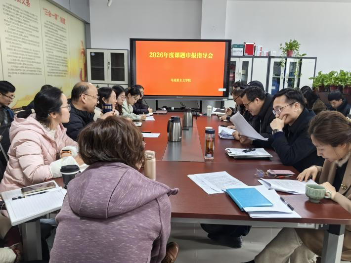 为切实提升学院教师科研素养与能力,强化思政课教学科研支撑,马克思主义学院开学伊始成功举办2026年度课题申报指导会。会议特邀江南大学马克思主义学院副院长、博士生导师潘加军教授进行专业指导,马克思主义学院院长刘海滨主持,高鹏书记、邢慧副院长及全体课题申报负责人参加。会上,潘加军教授基于31份培育申报书,进行了精准、深入的点评与指导。他重点围绕课题选题与内容撰写两大核心,指出选题应坚持目标导向与问题导向...