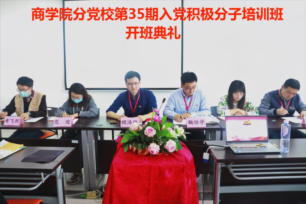 11月10日,商学院分党校第35期学生入党积极分子培训班开班典礼隆重举行。商学院党总支副书记(主持工作)顾浩俊老师、副书记鞠恒学老师、学生党支部黄飞剑、王璐、范迎老师及90名入党积极分子参加了开班仪式。开班典礼由李善战老师主持。
