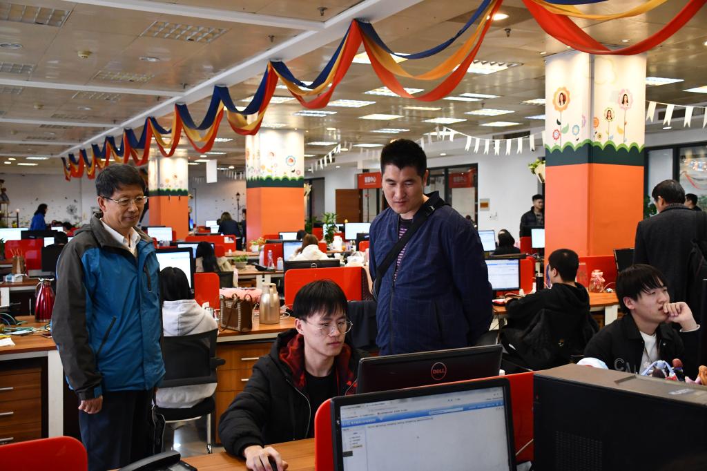在公司招聘部张浩经理陪同下与实习学生一起进行了座谈,任建伟副主任对2019级学生实习工作进展状况、实习学生工作表现、生活等情况进行了了解,鼓励同学们认真履行实习期间的工作要求,切实做好实习后期工作。蔡丽巍院长咨询了相应学生在企业的进步和发展,询问学生针对学校相应课程安排的建议。