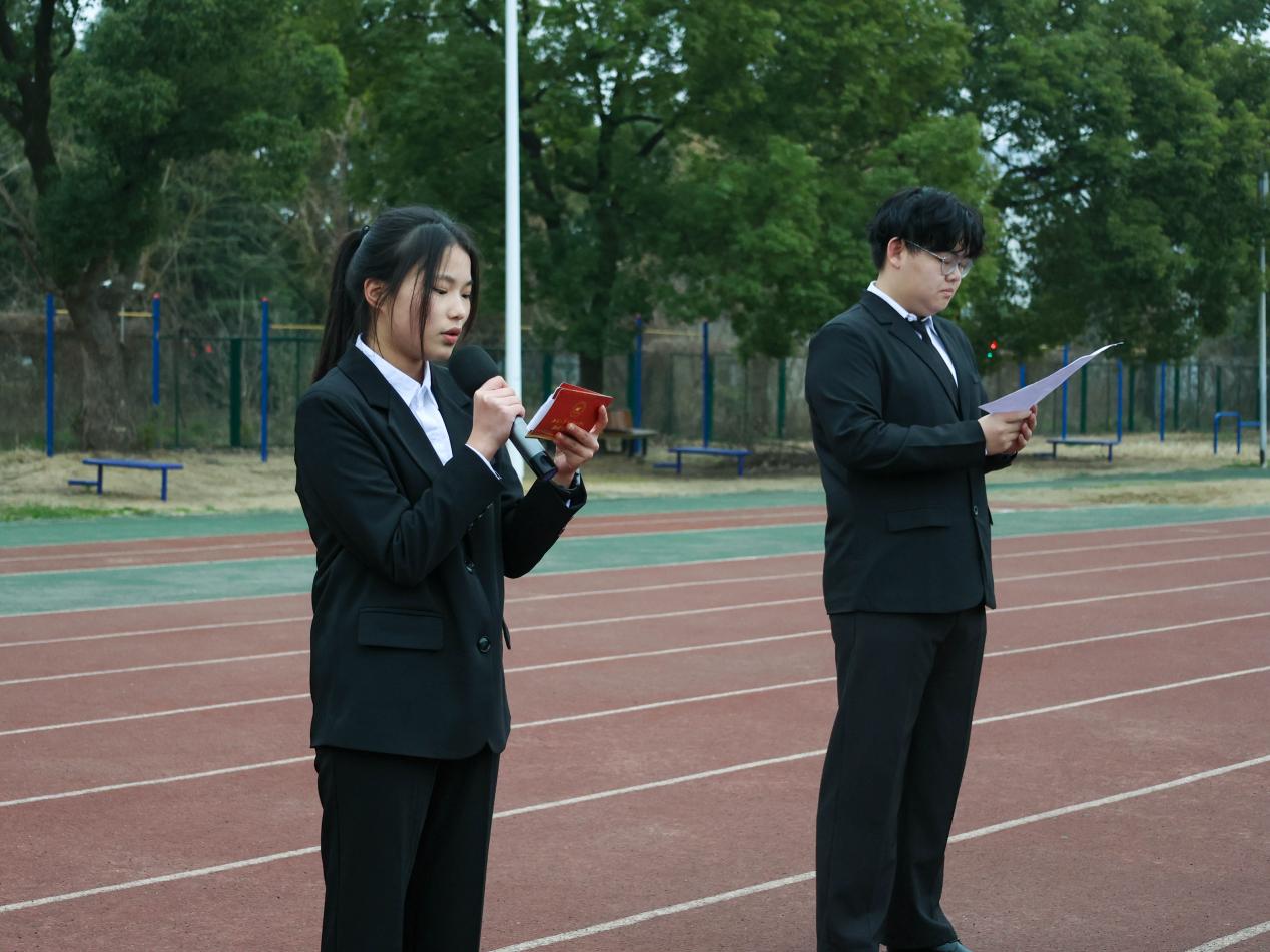 汽车与智能交通学院智能网联241班张景琦主持仪式,微电子学院学生代表集成电路242班王雅凤以《勇做时代新青年 敢于担当创未来》为题,作国旗下的讲话,她号召同学们在新学期锚定目标,提升专业技能,树立远大理想,砥砺前行。