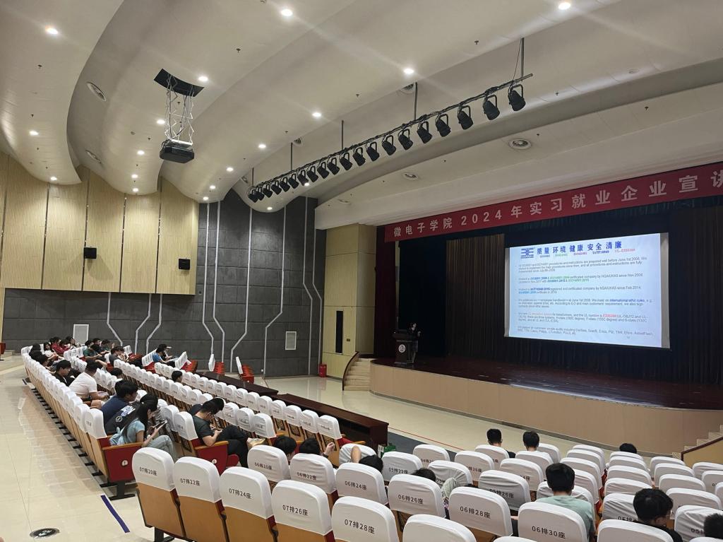 2024年6月6日,微电子学院在图书馆大报告厅举办企业专场宣讲会,企业方代表、22级辅导员、班主任代表、22级全体学生、21级部分学生参加了此次活动。