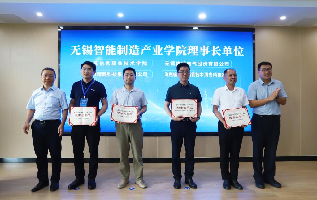 孙琳处长、黄小东处长、张国斌调研员、左同宇书记、王正堂总监、巫海明副总裁、孙东辰总经理共同启动“无锡智能制造产业学院”启动屏,标志着无锡智能制造产业学院正式投入运行。