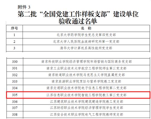 日前,教育部办公厅公布了第二批新时代高校党建示范创建和质量创优工作建设单位验收通过名单,智能工程学院教工第三党支部顺利通过“全国党建工作样板支部”验收。