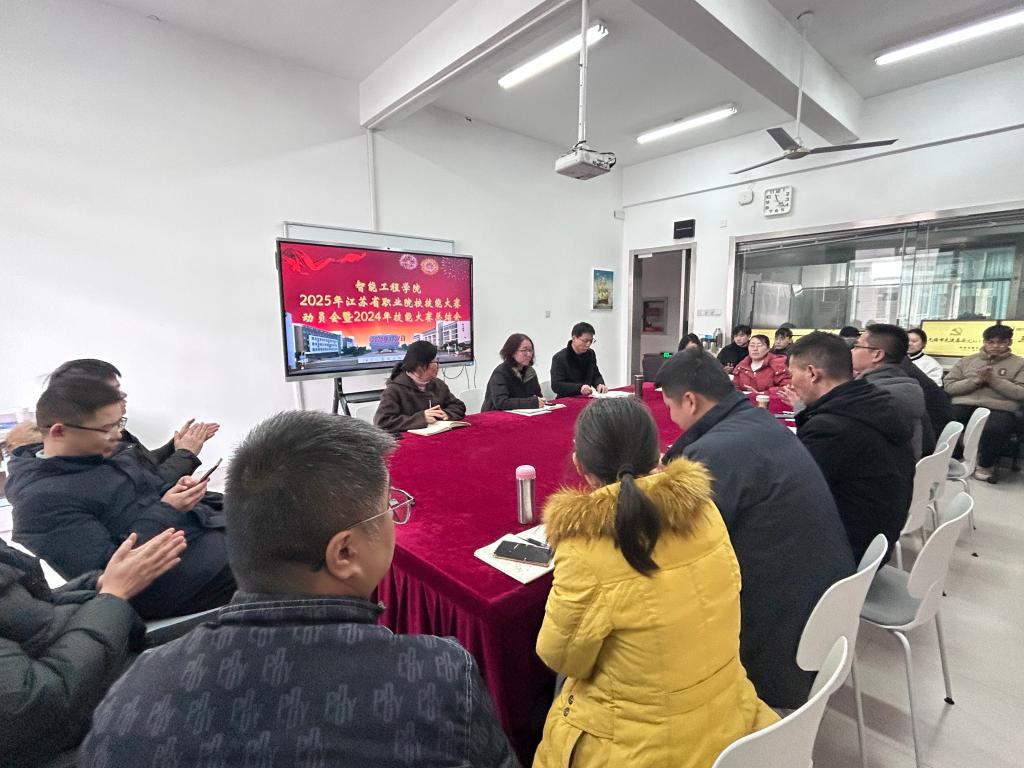 1月7日下午,智能工程学院召开2025年江苏省职业院校技能大赛动员会暨2024年技能大赛总结会,全面回顾2024年成绩,精心部署2025年备赛工作。智能工程学院党总支书记甘辉、副院长(主持工作)徐善状、各赛项指导团队与参赛师生出席了会议。严惠副院长主持了会议。